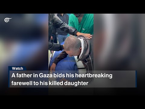 مشاهد قهر وألم خلال وداع مواطن لوالده الشهيد غزة فلسطين